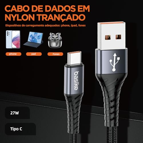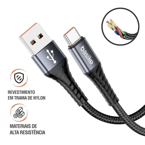 Transforme sua experiência de carregamento com o Cabo USB-C Basike! Ideal para quem busca eficiência e estilo, este cabo combina alta performance com um design moderno.