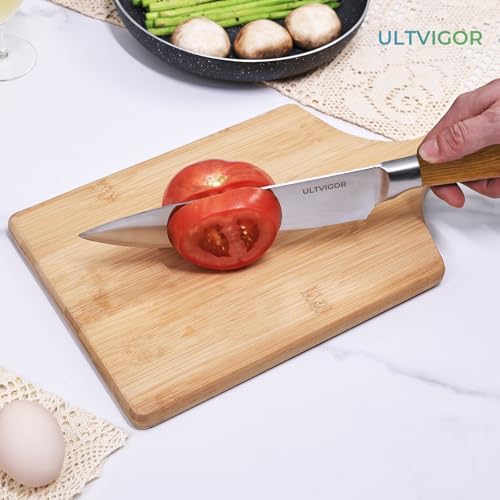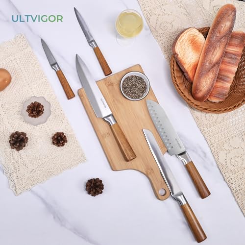 O conjunto de facas da série 4CR13 da ULTVIGOR é de excelente qualidade e foi projetado para cozinhas domésticas, chefs profissionais e amantes da comida para atender a uma ampla gama de necessidades culinárias. 【4CR13 Aço Inoxidável】 -A lâmina de aço de alto carbono 4CR13 tem uma dureza de HRC56 para excelente durabilidade e afiação.…