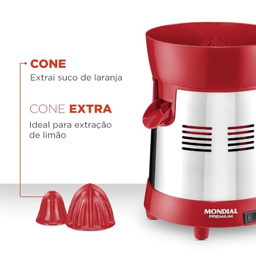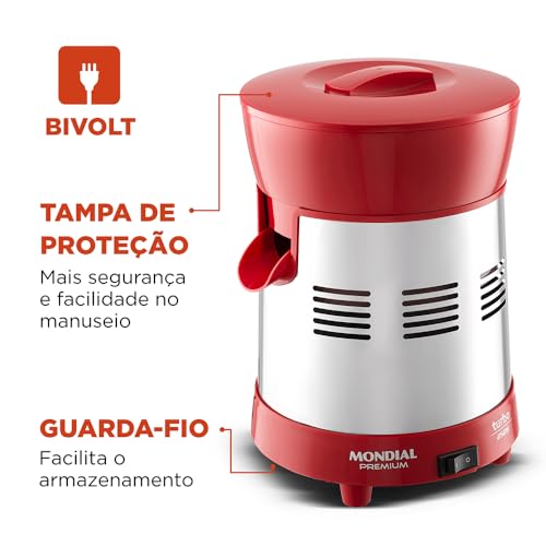 Extrator Turbo Premium MONDIAL – Vermelho/Inox, 250W – E-24