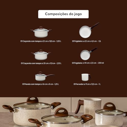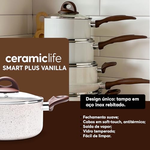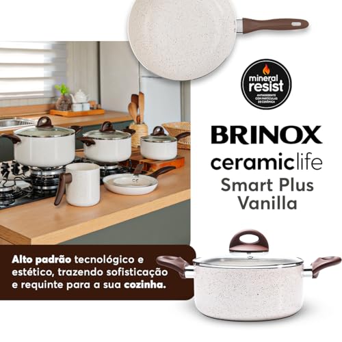 Brinox – Jogo de Panelas Antiaderente Ceramic Life 6 Peças Smart Plus – Vanilla