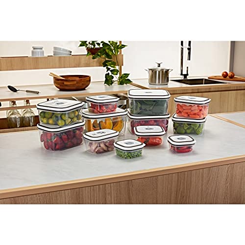 Feitos com material de alta qualidade e livres de BPA. Formatos inteligentes com tamanhos funcionais e empilháveis que facilitam a organização na sua cozinha. Conta com tampa de fácil abertura e registro de data para controle de armazenamento. Vedação hermética com anel de silicone, possuem selagem perfeita que ajuda a preservar e conservar os alimentos…