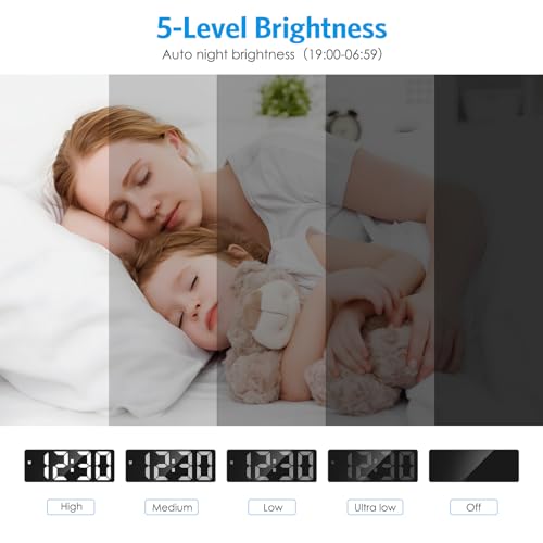 Relógio despertador digital com visor LED e exibição de temperatura para quarto, casa, dormitório e escritório Design minimalista e retangular em cor preta, com brilho ajustável para melhor visualização Funcionalidades incluem controle de voz, visor 12/24H e alarme para maior praticidade uso diário