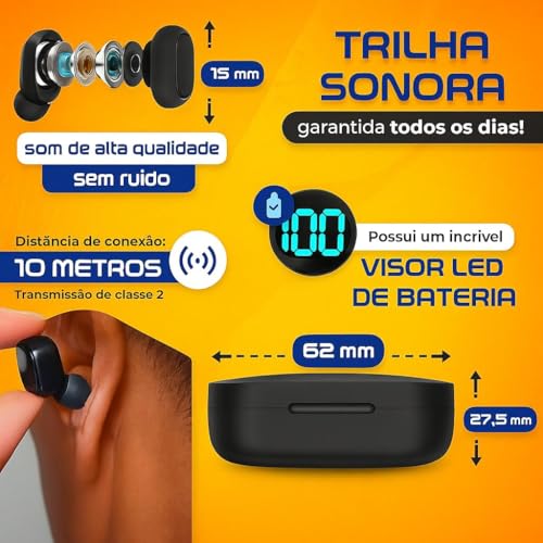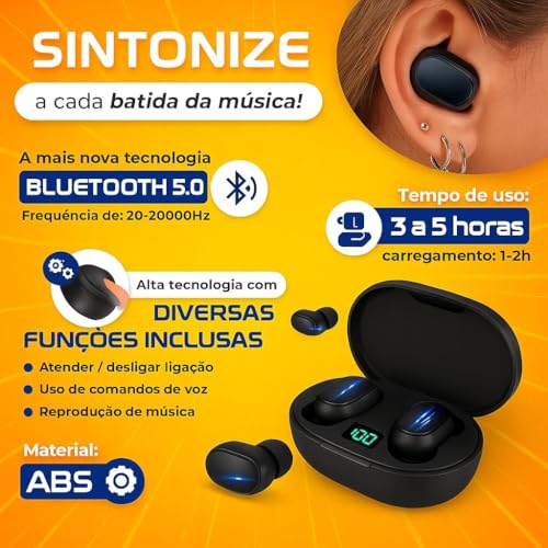 - 🔊 Bluetooth 5.1 TWS Wireless: Conexão rápida e estável com dispositivos Android e iOS.