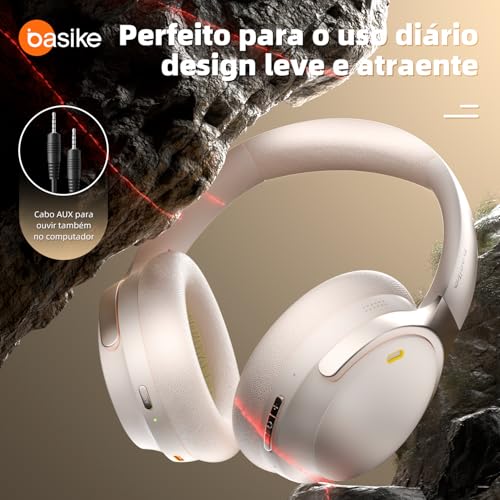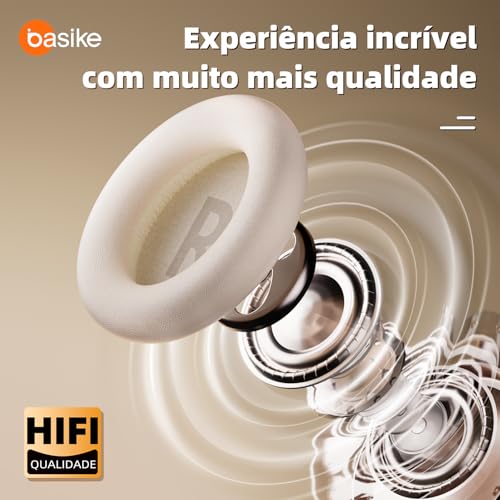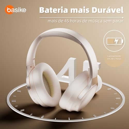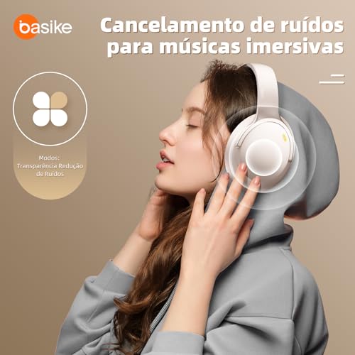 Basike Fone de Ouvido Bluetooth com Cancelamento de Ruído ANC (Branco)