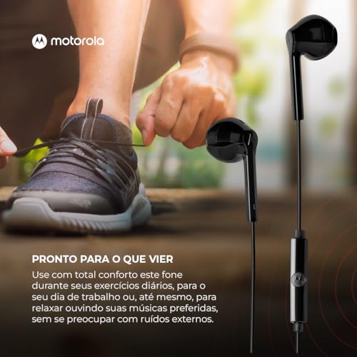 • Fone de ouvido com fio da Motorola, cabo de 120cm e entrada P2.