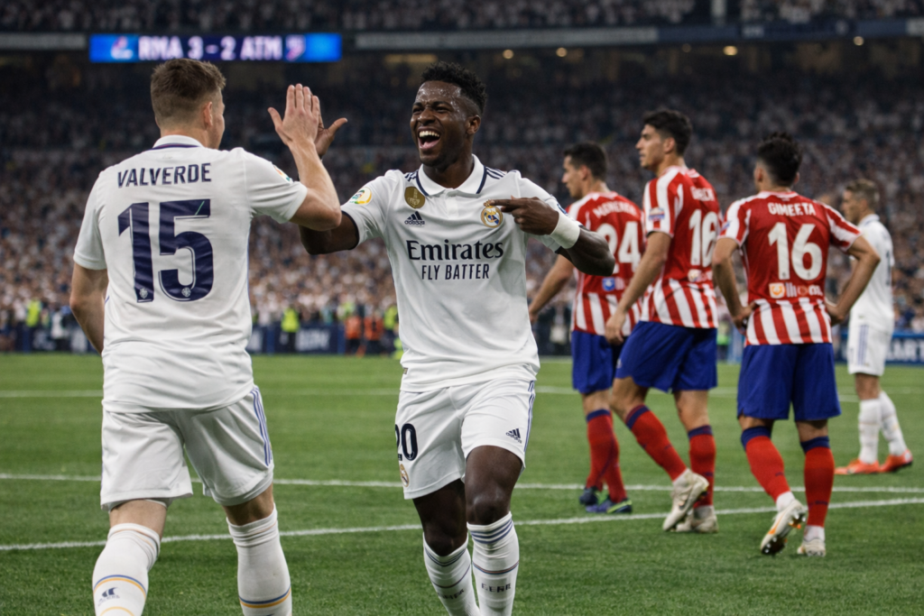 Real Madrid vence Atlético de Madrid por 3 a 2 em clássico emocionante, com show de Vinícius Jr. Veja gols, destaques e o que muda na La Liga.